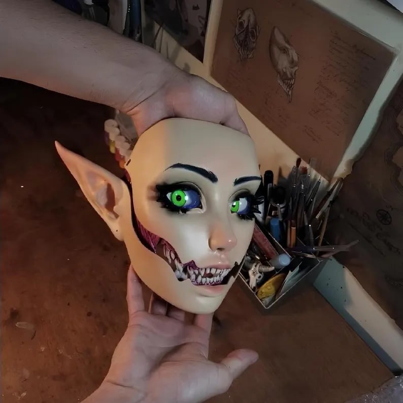 Application Scenarios: This mask can be used for Halloween and themed parties, helping the wearer quickly immerse in a fantasy or dark atmosphere. It can also serve as an artistic creation displayed at craft exhibitions or studio showcases, highlighting the creator's style.