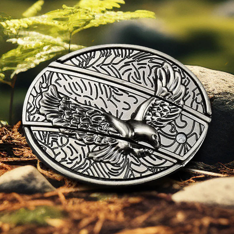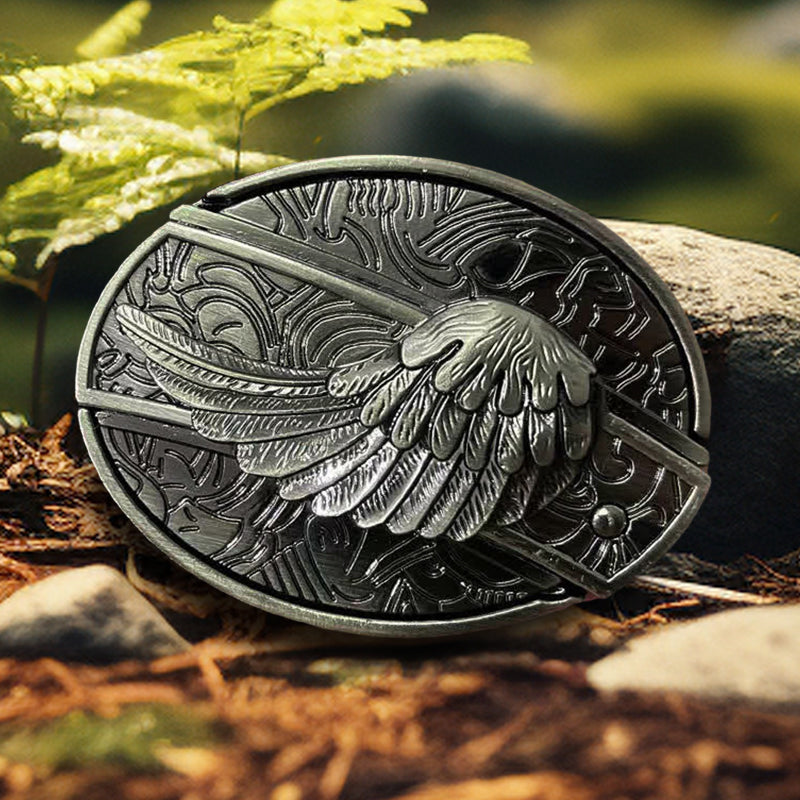 This buckle has an awesome shiny finish. It is in perfect wearable condition, it has a knife that is hidden inside the buckle in a pullout compartment. It fits with a metal bar and pin (for a snap on belt). Quality guaranteed, picture does not do this buckle justice! Would make a stand out addition to your belt.