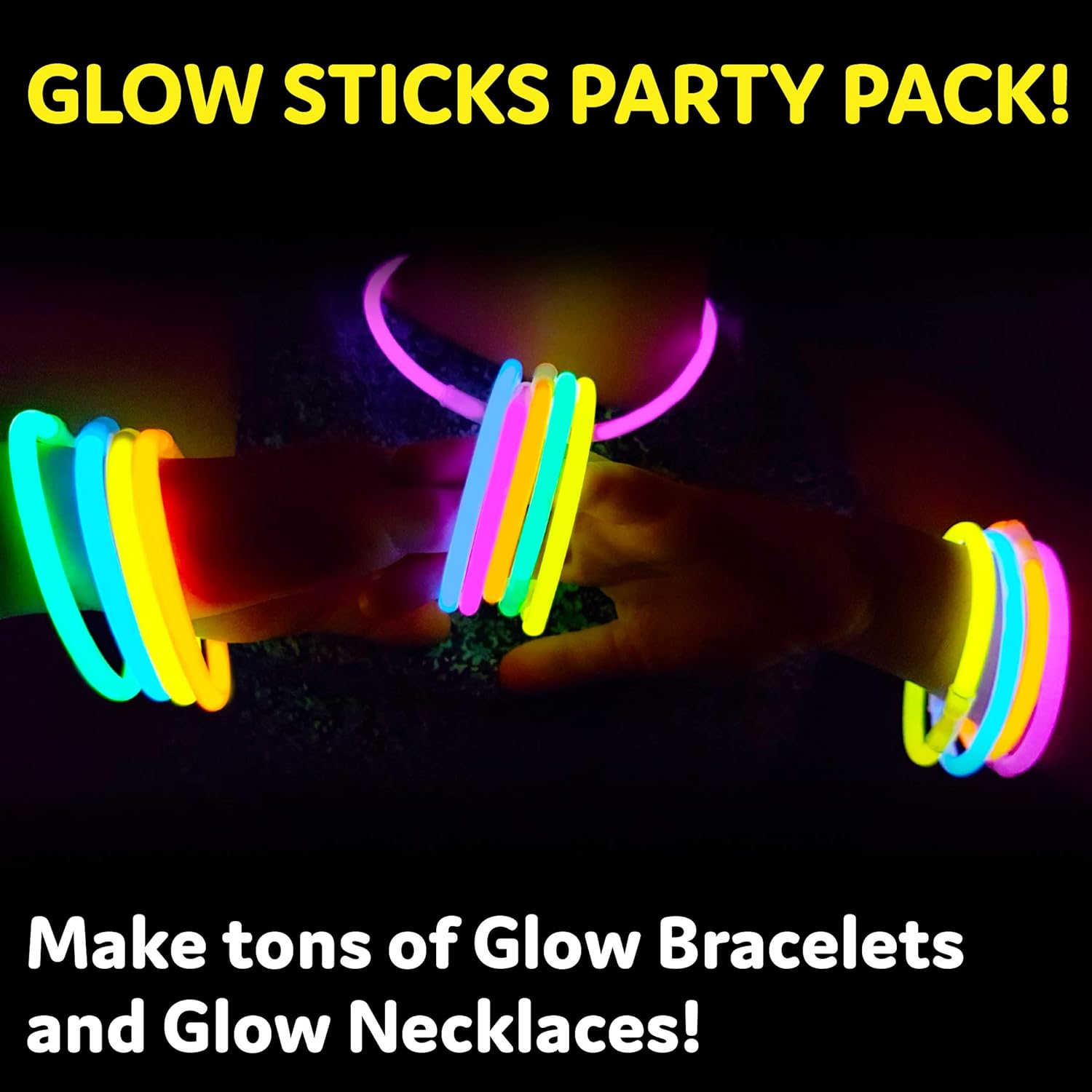 100 Glow Sticks Party Pack: Light up with 100 pieces of easy-to-activate and vibrant multi-colored light sticks plus 100 pieces of dependable connectors that stay put for hours