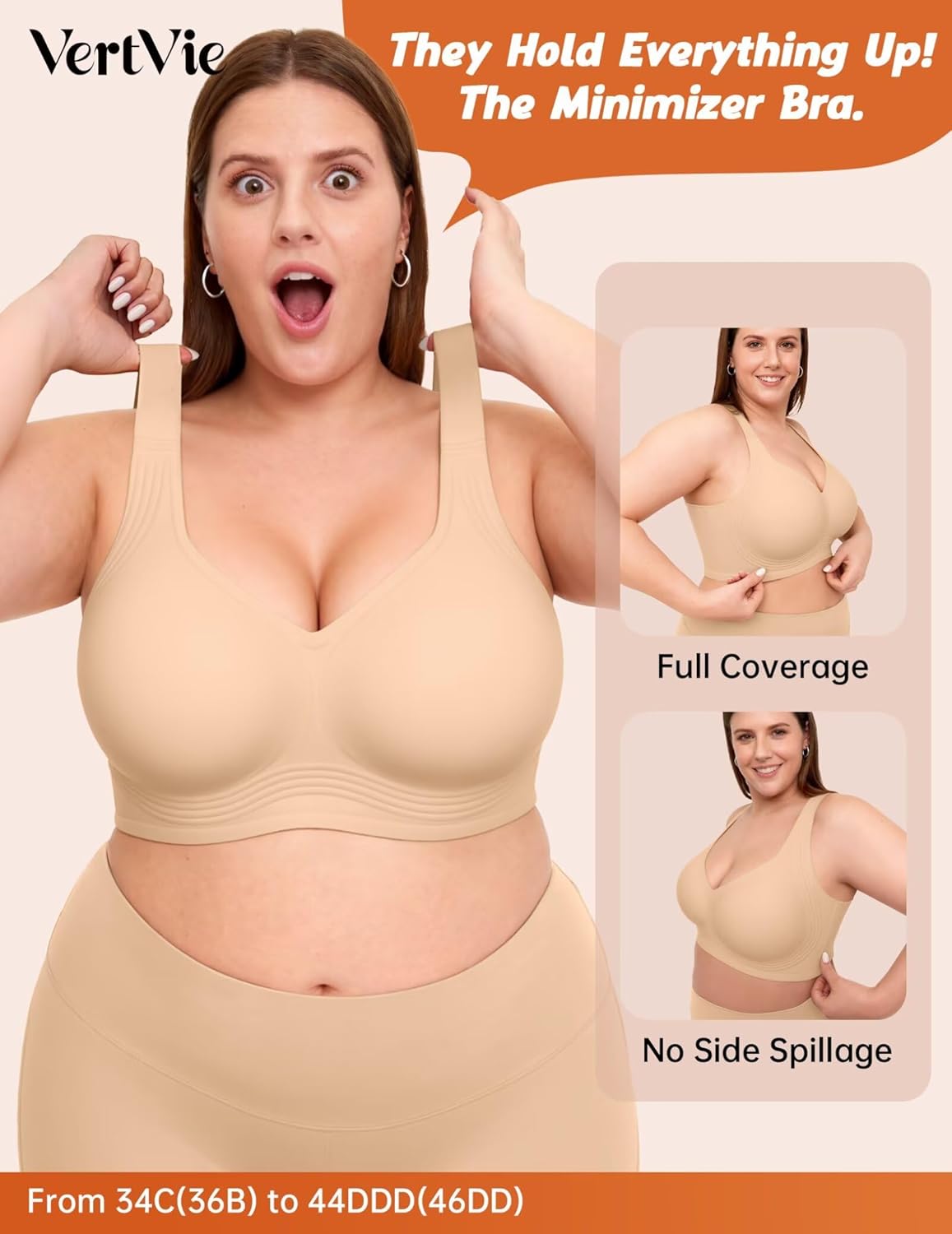 Full-Coverage Minimizer & Back-Smoothing Bra: Engineered for a flawless silhouette, this full-coverage minimizer bra is designed to smooth and reshape your figure. The high side panels and full-back design offer superior coverage to prevent spillage, providing the ultimate solution for smoothing side and back fat—truly living up to its name as a no back fat bra. For a customizable fit, this wireless bra is equipped with an adjustable 5x4 hook-and-eye back closure and includes a free extender